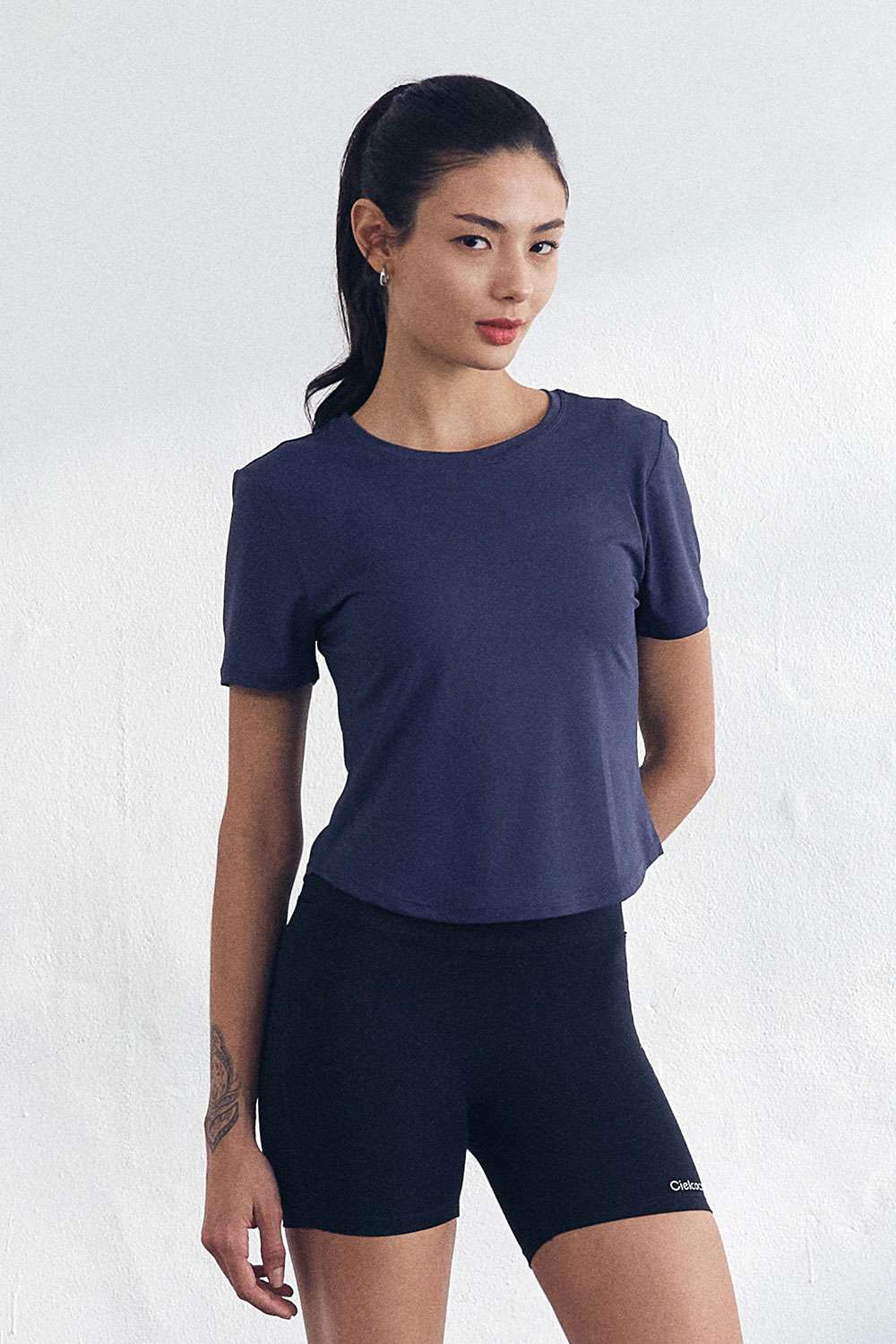 CLWT8105 아스킨 세미 크롭 숏 슬리브 네이비
