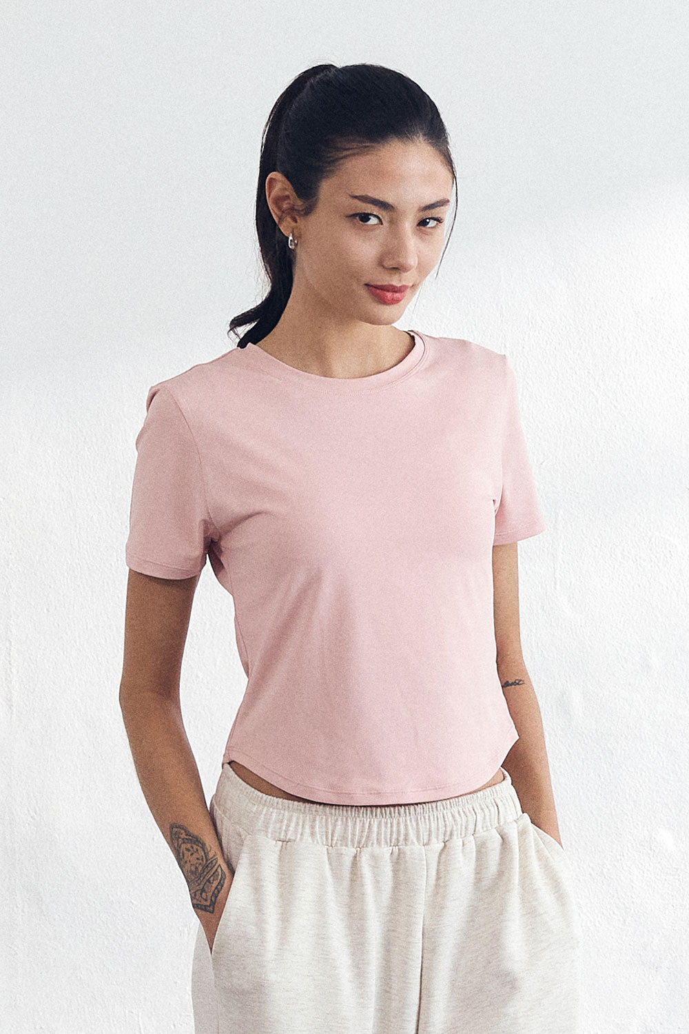 CLWT8105 아스킨 세미 크롭 숏 슬리브 핑크